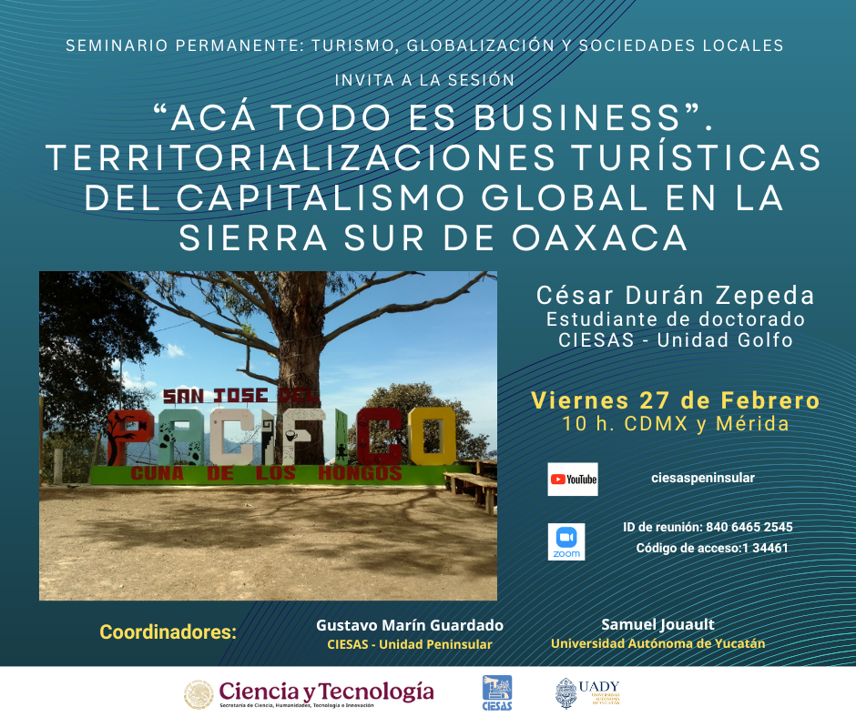 El Seminario permanente Turismo, Globalización y Sociedades locales, invita a la sesión: «Acá todo es Business». Territorializaciones turísticas del capitalismo global en la sierra sur de Oaxaca.